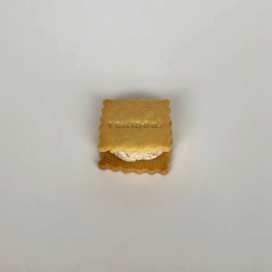 サクサクのクッキー生地の間に、キャラメルの甘さと香ばしさが広がるソースとクリームがたっぷりと挟まれており、一口ごとに幸せな気分を味わえます。